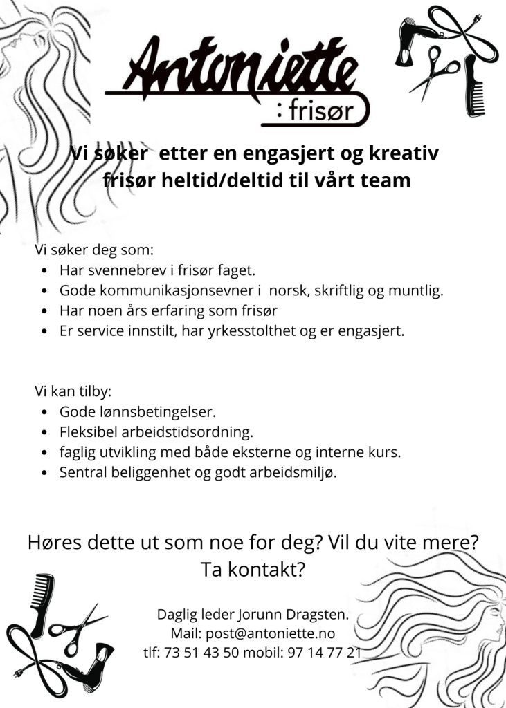 Antoniette Trondheim Torg søker engasjert og kreativ frisør.